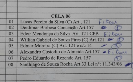 Fugiram Edmar Moreira, Willian Gabriel de Souza Pires, Santhiago de Souza Rocha, Deidimar Barbosa da Conceição e Pedro Eduardo de Rezende.