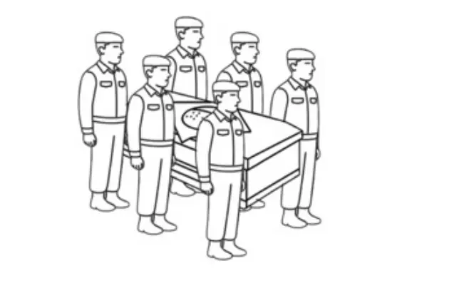 Escolta fúnebre: é o efetivo que acompanha o caixão durante o deslocamento até o local de sepultamento ou cremação, podendo ser motorizada ou a pé. Formada de preferência por integrantes da unidade militar do falecido.