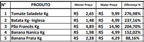 O quilo do tomate foi o que apresentou a maior variação de preço, com diferença de 276,98%. A batata inglesa teve variação de 237%. Já os alimentos que tiveram menores variações foram: feijão, arroz e o leite.