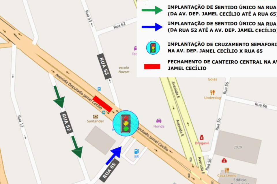 Prefeitura de Goiânia altera sentido de vias no entorno da Avenida Jamel Cecílio a partir desta quinta-feira (7/8)