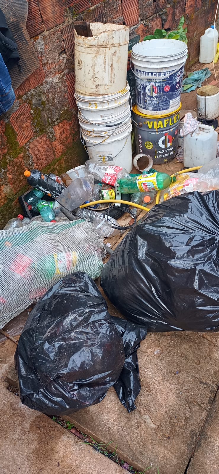 Morador acumula lixo há cerca de 10 anos. Vizinhos reclamam que local virou criadouro de mosquitos da dengue