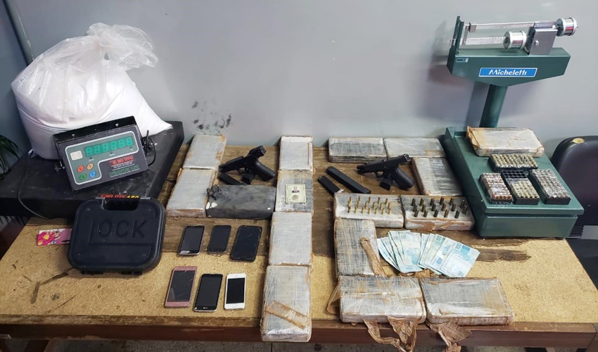 Em três endereços foram achados cocaína, avaliada em R$ 40 mil, armas e munições