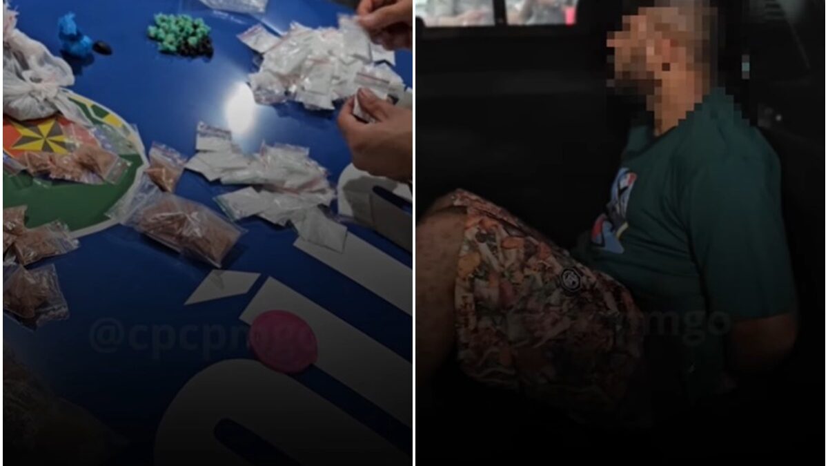 Com o suspeito, os policiais encontraram “diversas quantidades e variedades de drogas”, juntamente com balanças de precisão, um celular de “procedência duvidosa” e R$ 156 em espécie. Os entorpecentes seriam cocaína, crack, maconha e ecstasy.