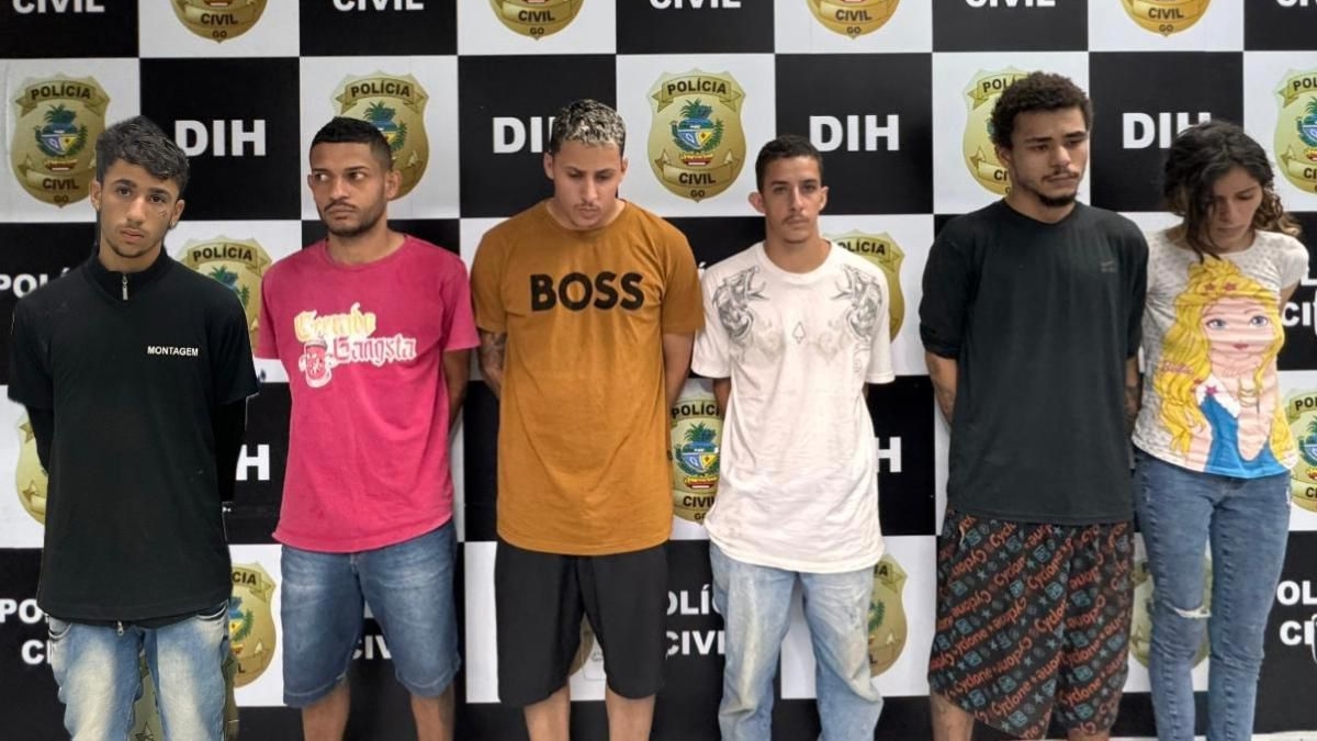 Cinco homens e uma mulher foram presos pela Polícia Civil nesta segunda-feira (22), em Goiânia, suspeitos de comandarem execuções e o tráfico de drogas no Jardins do Cerrado, bairro que fica na saída para Trindade. Investigações apontam que o grupo foi o responsável, no último dia 17 de julho, pelo assassinato de um jovem, de 21 anos.
