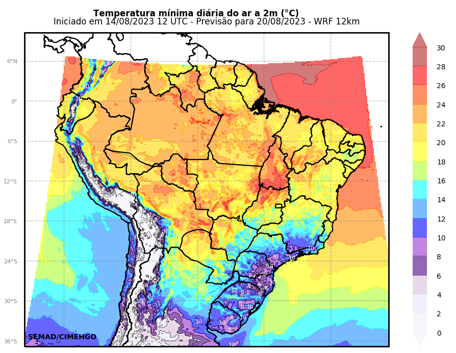 O avanço da frente fria que vem do Uruguai pode chegar até o Sul e Sudoeste de Goiás, e abaixar as temperaturas mínimas. A dinâmica da atmosfera pode, inclusive, provocar chuvas leves nas regiões mais ao Sul do Estado.