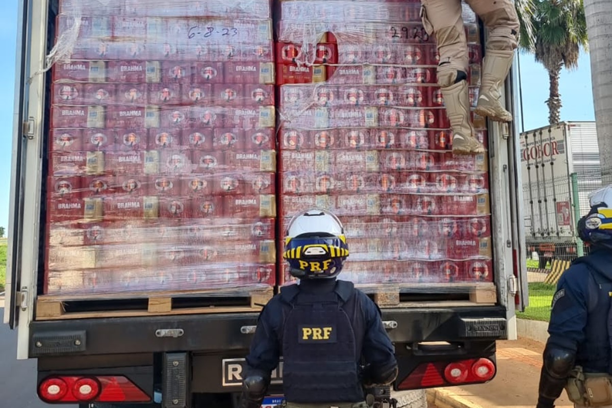 A Polícia Rodoviária Federal (PRF) apreendeu mais de 150 mil latas de cerveja irregulares em um caminhão na BR-153, em Goiânia. A mercadoria foi carregada na região Sudeste e tinha como destino, conforme a documentação fiscal, o estado do Tocantins.