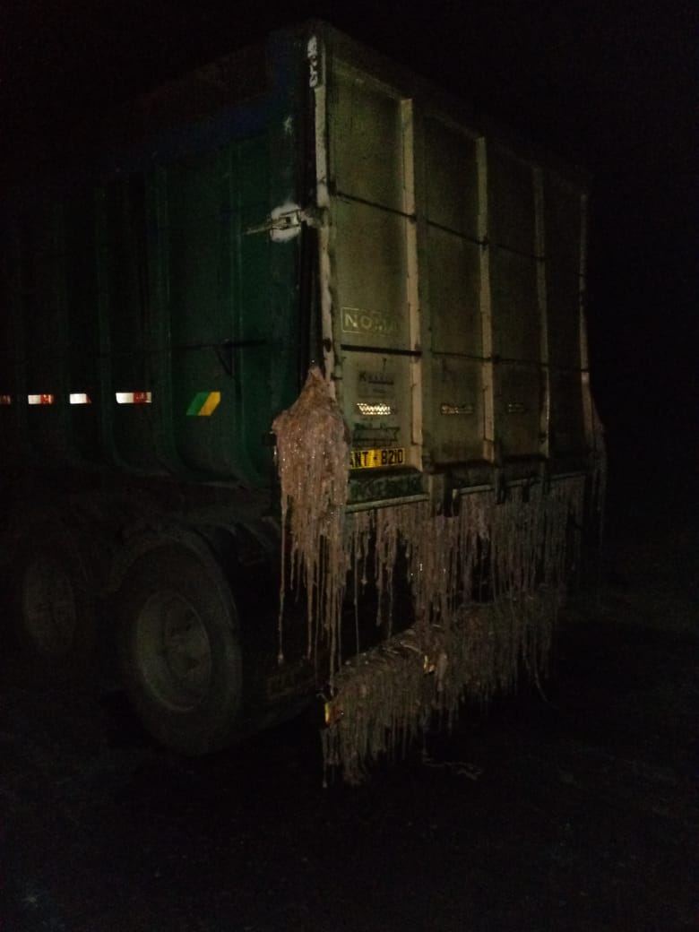 Segundo a PRF, o incidente aconteceu por volta das 3 horas da manhã e deixou a pista escorregadia. A carga saiu de Buriti Alegre, com cerca de 25 toneladas do produto, e o destino seria a cidade de Nova Veneza.