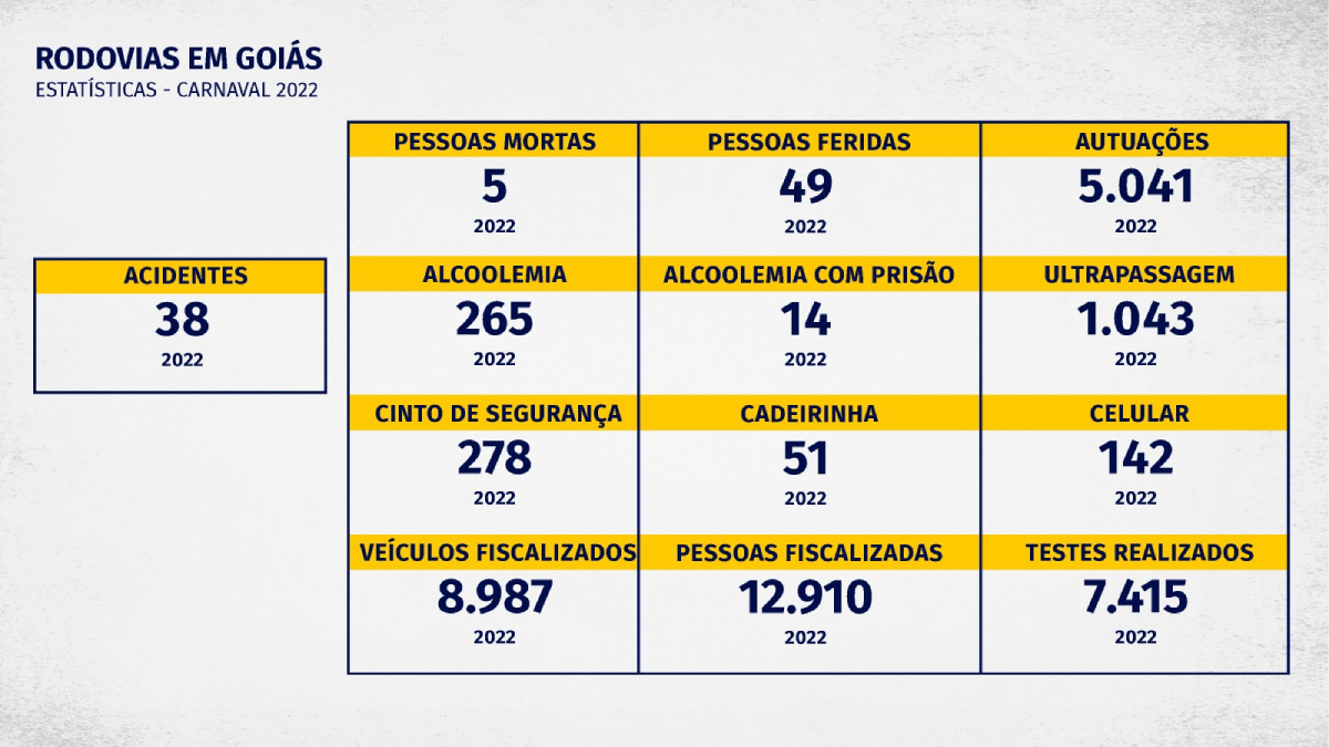 Em Goiás, o reforço na fiscalização ocorrerá em todas as nove rodovias federais que cortam o estado, principalmente naquelas que dão acesso a pontos turísticos, tradicionalmente atrativos para a festa de Momo, como as BRs 153, 060, 414 e 364, utilizadas por quem vai para Caldas Novas, Região dos lagos da Serra da Mesa e São Simão, bem como Pirenópolis e Corumbá de Goiás.