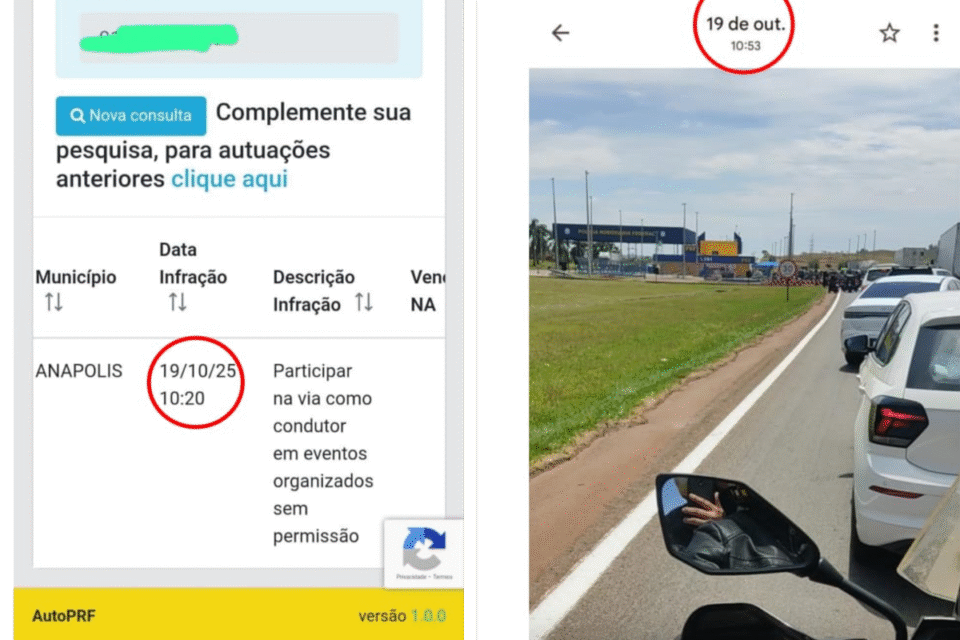Os cinco motociclistas apresentaram recursos administrativos à PRF, anexando fotos, vídeos e comprovantes de gastos que demonstram inconsistências nos horários das autuações. Em uma das imagens enviadas, é possível ver que o grupo passou pelo posto policial por volta das 11h, enquanto as multas registram a suposta infração às 10h20, ou seja, antes mesmo de chegarem ao local.