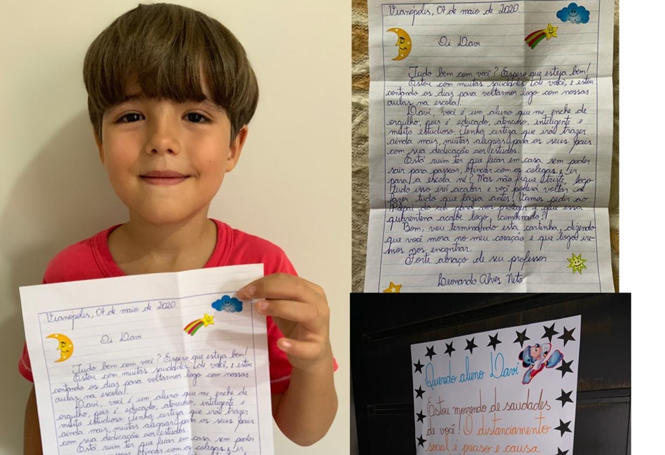 Além dos cartazes, o professor escreveu cartinhas para as crianças. Um dos alunos, o Davi Couto Souza, de seis anos, falou à reportagem que adorou a surpresa do professor e está com saudades de todos: “Eu queria que o coronavírus passasse para nós estudarmos todos juntos”.