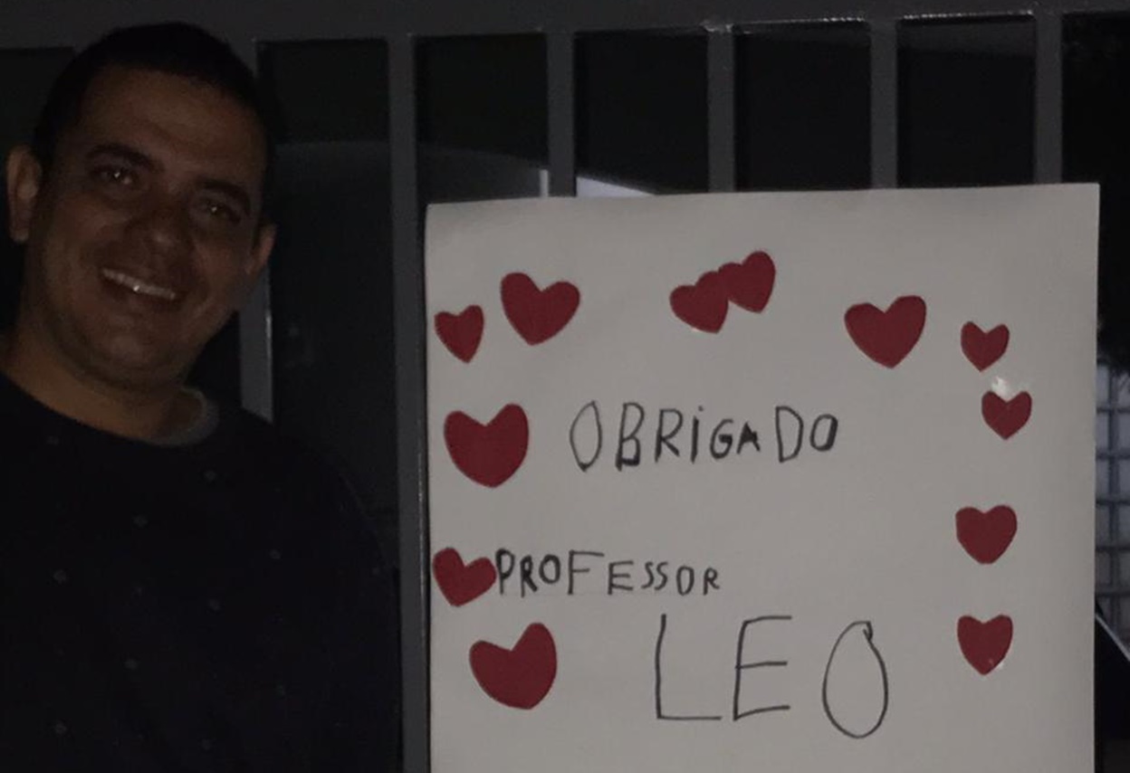 Mas a surpresa foi mesmo para Leonardo, pois quando ele retornou para casa depois da entrega das mensagens, deparou-se, também, com um cartaz que trazia a seguinte mensagem: “Obrigado professor Leo, com carinho, José Antônio”. O professor não escondeu a emoção: “Isso me motiva cada vez mais a ser um bom professor. Estou encantado com a alegria que eles estão neste momento”.