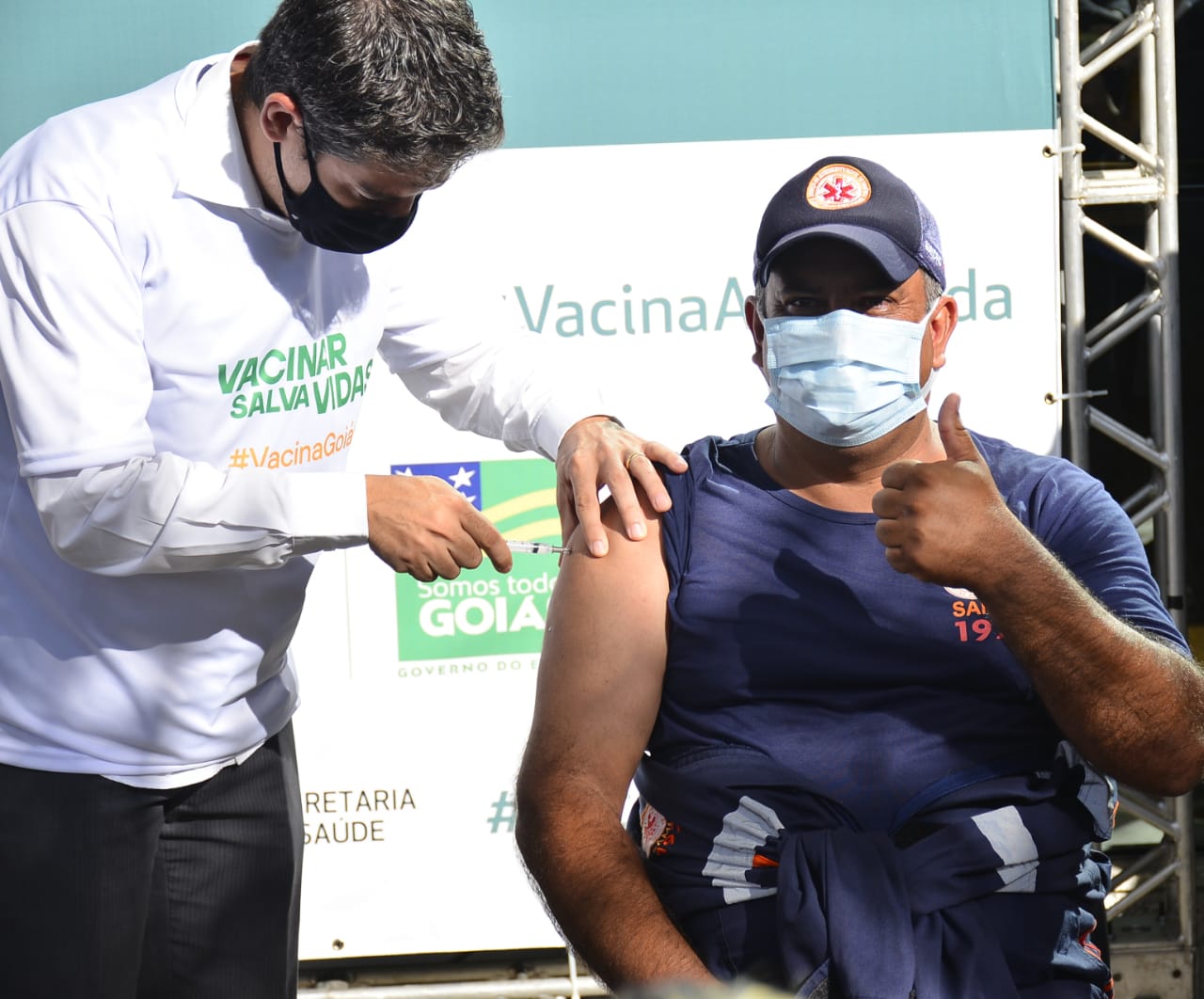 Durante a vacinação, o governador Ronaldo Caiado também pediu que a população diminua as aglomerações e eventos, além de ressaltar a importância do uso da máscara e do distanciamento social.