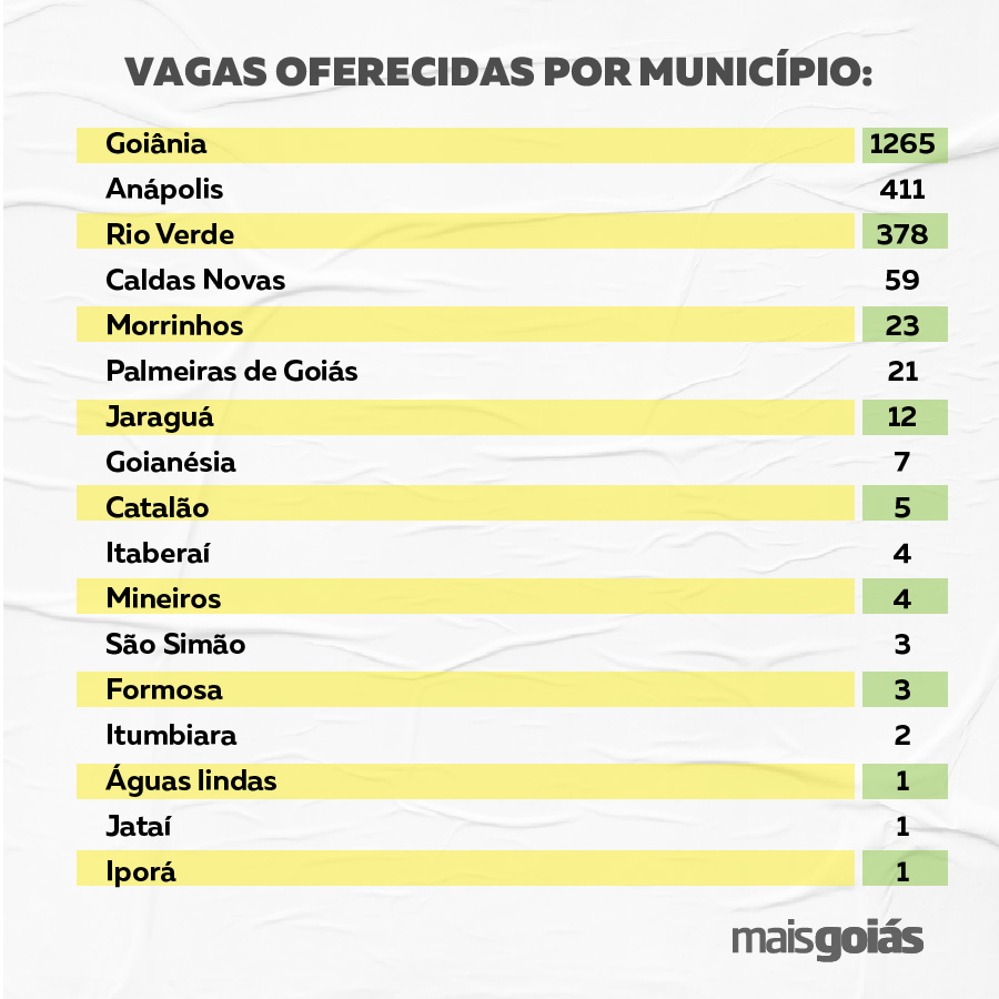 Programa oferece 2,2 mil vagas de emprego em 17 cidades goianas; veja