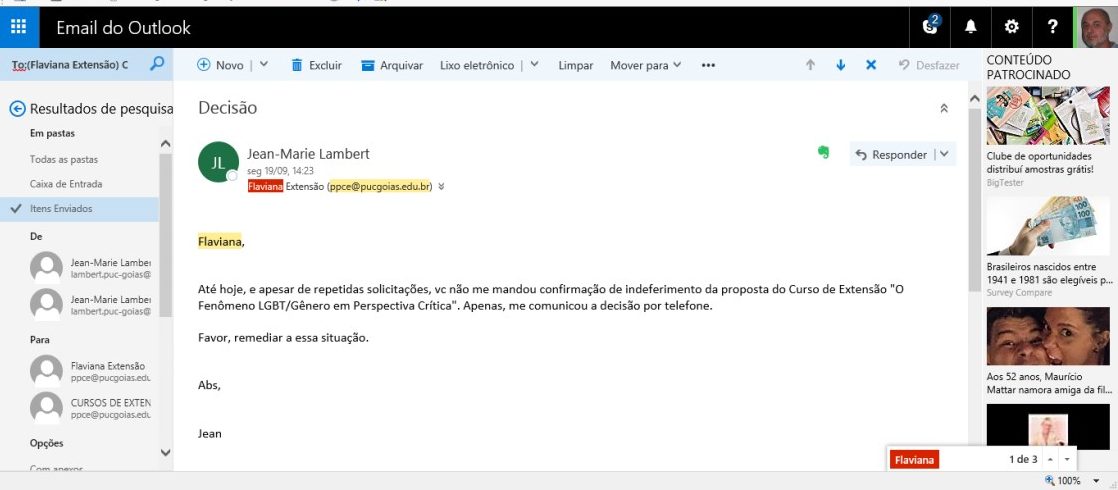 Para a advogada Lucélia Vasconcelos, que representa o docente, apesar da PUC ser uma instituição de ensino religiosa, a negativa “velada” da instituição em aceitar a preleção revela um posicionamento político-ideológico. Segundo ela, requerimentos para inclusão do curso na grade foram repetidamente ignorados. “Evitaram gerar provas contra eles mesmos, por isso não responderam os e-mails”. Veja exemplo de e-mail não respondido abaixo:
