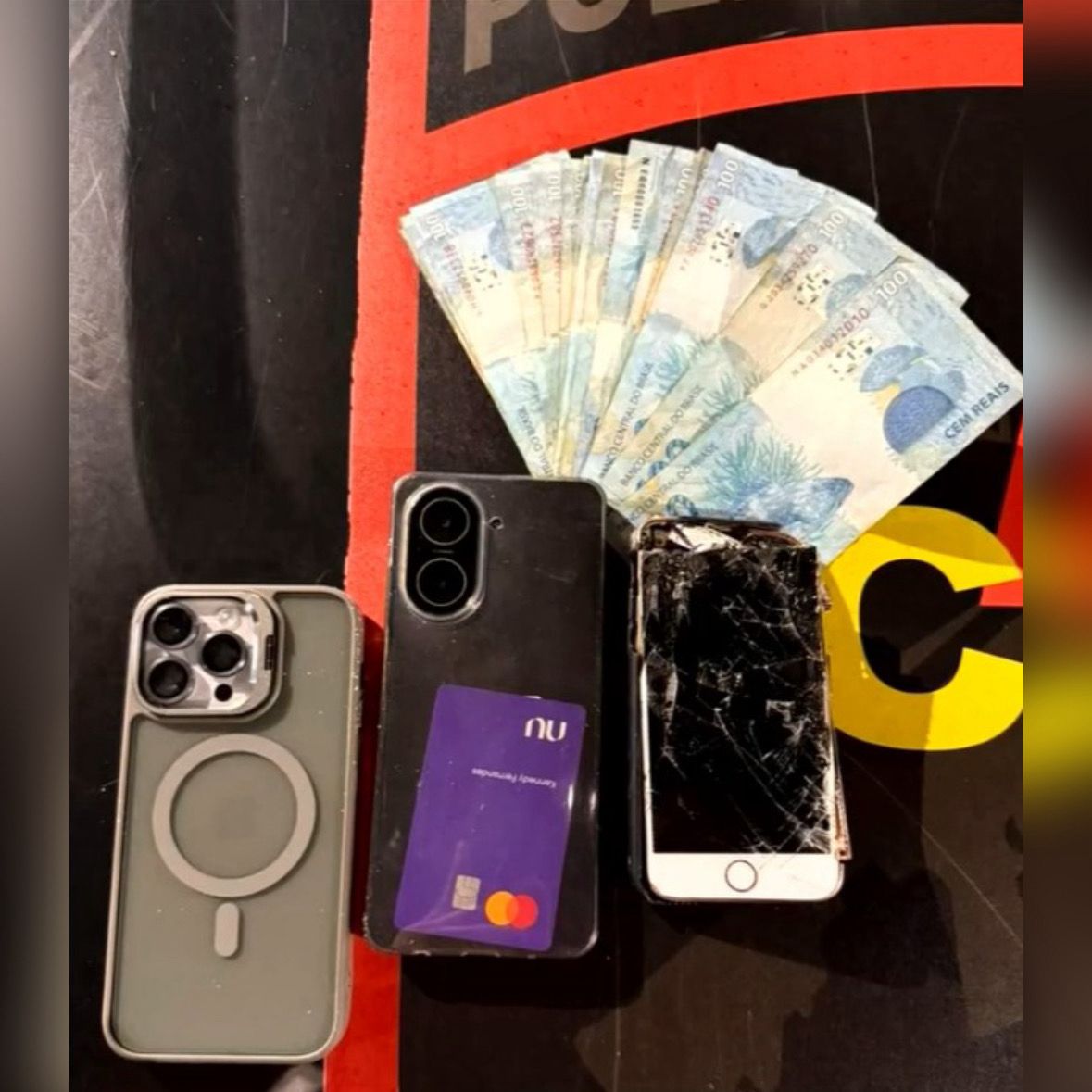 Durante a abordagem, os policiais recuperaram R$ 12.746 em espécie, o veículo usado na fuga e cinco celulares. Os detidos foram encaminhados à delegacia para os procedimentos cabíveis.