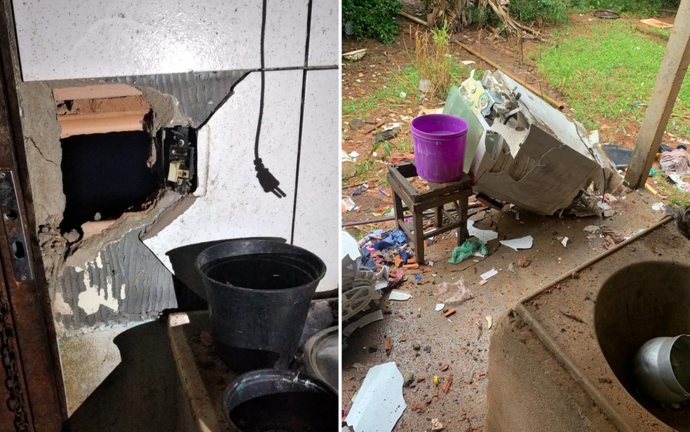 Um raio atingiu e destruiu parte de uma casa enquanto a família que mora na residência dormia. O caso aconteceu na madrugada de quinta-feira (17), em Nova Aurora, região sul de Goiás. Apesar de uma parte da casa ficar destruída, a mãe e os três filhos não se feriram.
