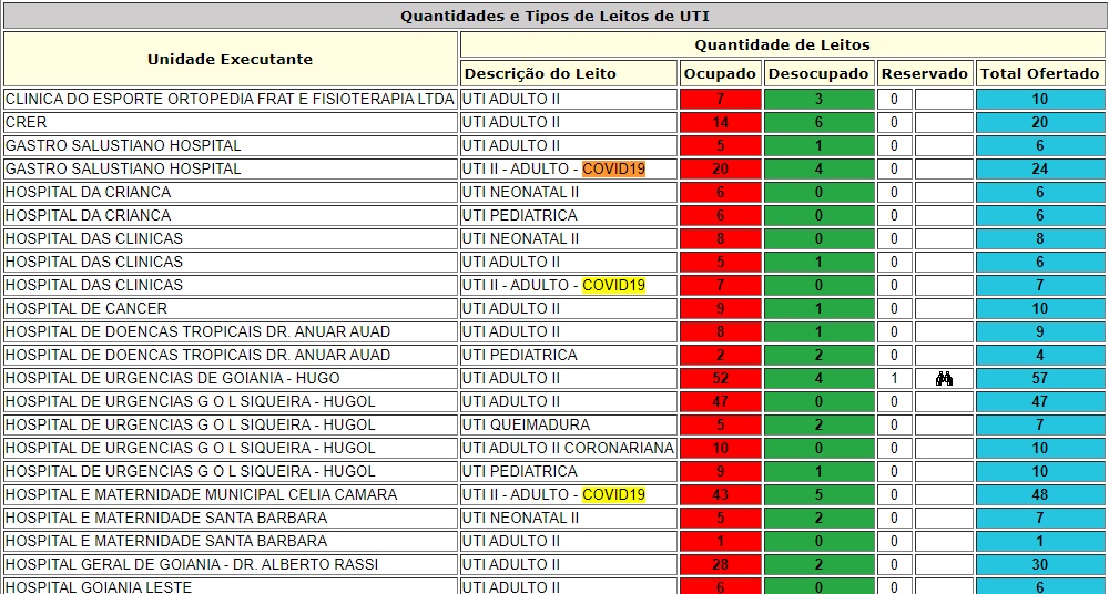 O Mais Goiás apurou que, nesta segunda-feira (22), apenas 9 vagas de UTI estão disponíveis nos três hospitais na capital que realizam o tratamento da covid-19. A Maternidade Célia Câmara tem 48 leitos, sendo que apenas 5 estão livres. O Hospital das Clínicas (HC) possui 7 UTIs e nenhuma está disponível no momento. Já o Hospital Gastro Salustiano tem 24 leitos, mas somente 4 estão vagos. Os dados são do Painel de Regulação da Prefeitura de Goiânia.