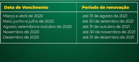 Conforme a deliberação do Contran, os condutores com CNHs vencidas entre março e abril de 2020 têm até 31 de agosto de 2021 para revalidar o documento; CNHs vencidas entre maio e julho de 2020 deverão ser renovadas até 30 de setembro deste ano. Quem teve a CNH vencida em dezembro de 2020 poderá circular com o documento até dezembro deste ano.