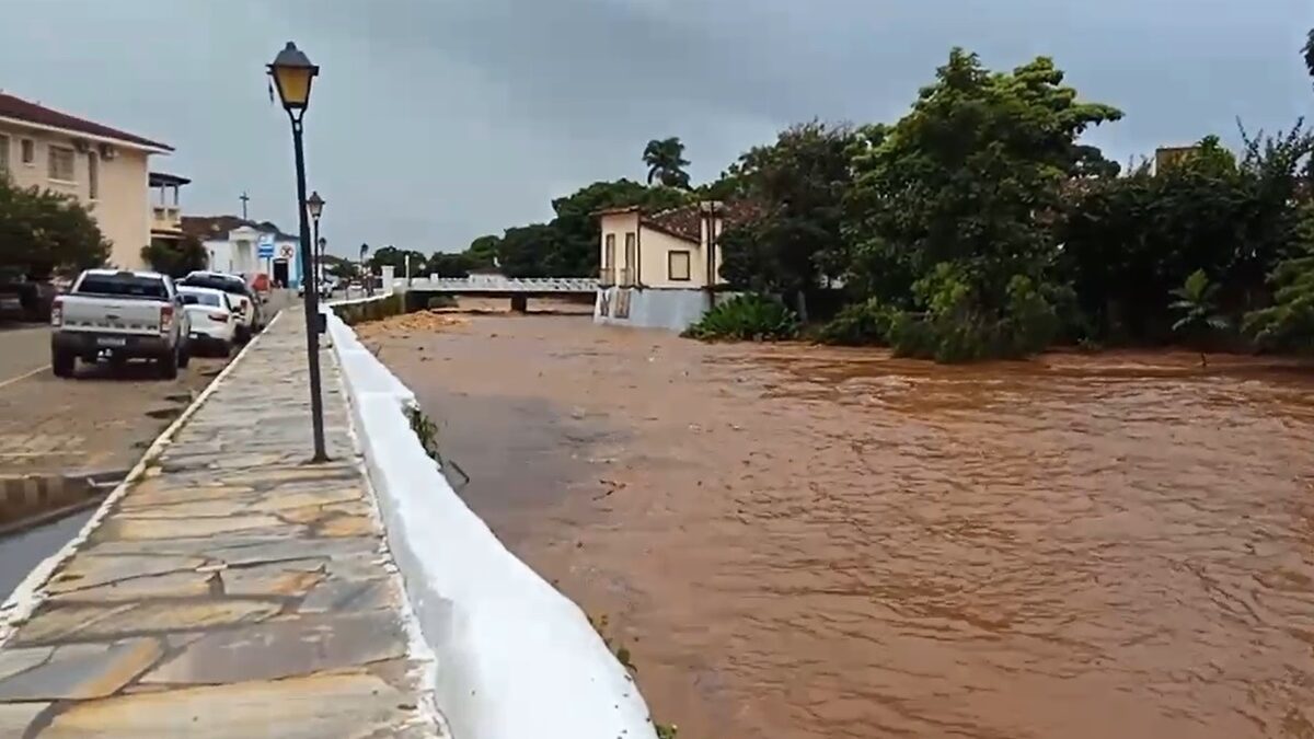 Rio Vermelho, na cidade de Goiás, tem cheia com chuva que ocorre desde a noite de segunda