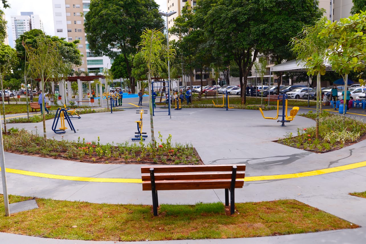 O prefeito Rogério Cruz inaugurou, na tarde desta sexta-feira (18), a revitalização da Praça do Ipê, no Setor Bueno, Região Sul da capital. Com 4.812 metros quadrados de área, o espaço recebeu academia ao ar livre, kit brinquedos, pet place, pergolados, fonte luminosa, irrigação automática, lixeiras e calçamento com piso tátil direcional e de alerta.
