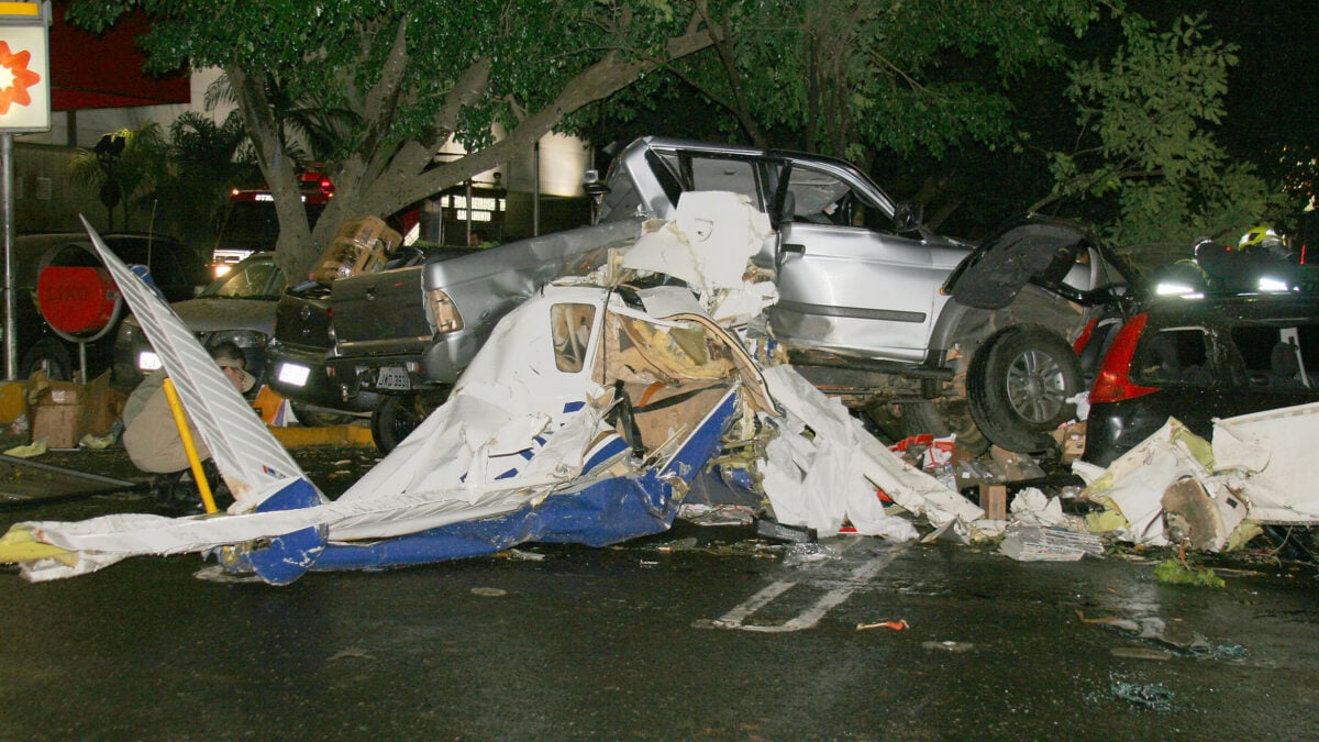 O Shopping Flamboyant, que teve uma de suas entradas invadida por um carro na noite desta segunda-feira (21/7), foi cenário de um episódio ainda mais grave em 2009: a queda de um avião no estacionamento do centro de compras, no Jardim Goiás.