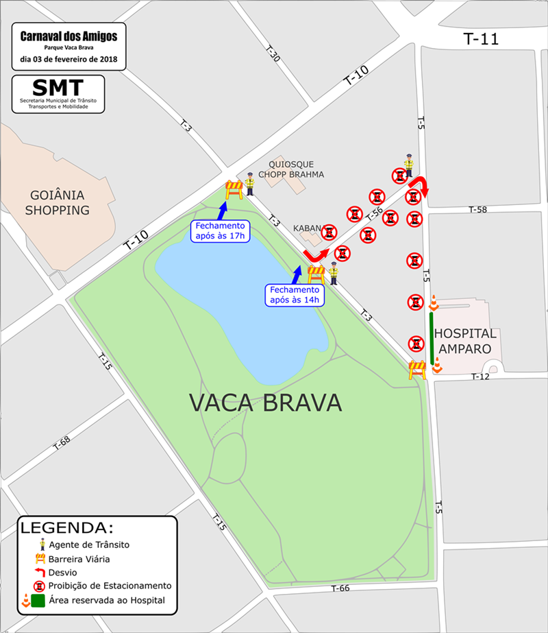 A Prefeitura de Goiânia, por meio da Secretaria Municipal de Trânsito, Transporte e Mobilidade (SMT), vai alterar o trânsito na região do Parque Vaca Brava, no Setor Bueno, para a realização da 18º edição do Carnaval dos Amigos, que acontece neste sábado (03) .