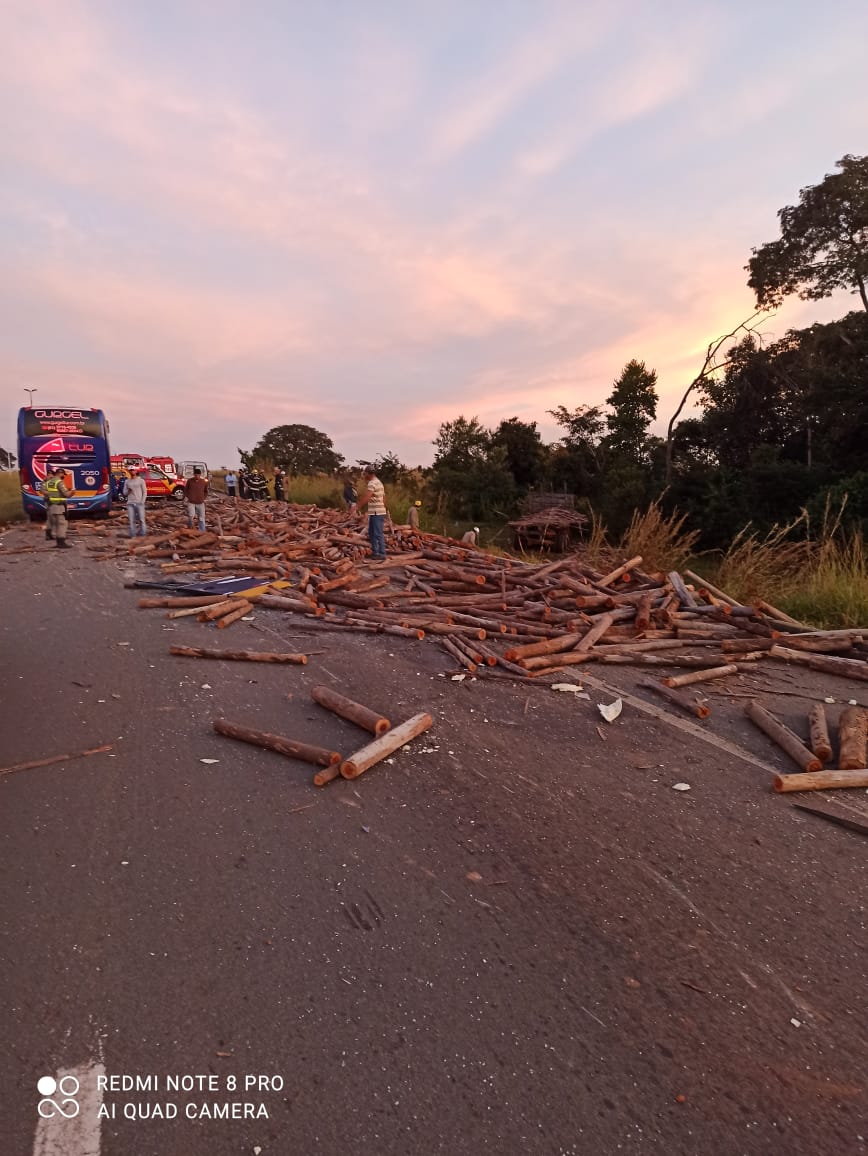 Ainda não há detalhes do que pode ter causado o acidente. A carga de madeira ficou espalhada pelo chão