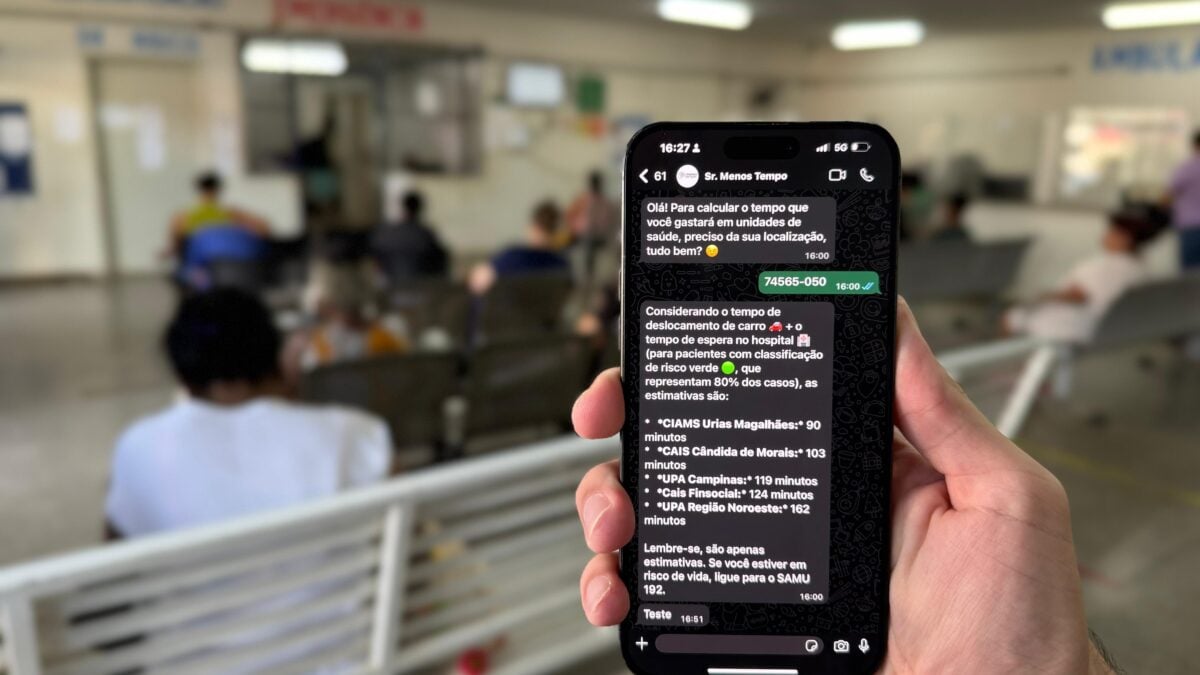 A solução é objetiva e acessível: o cidadão envia o CEP por WhatsApp e, em segundos, recebe as estimativas de tempo total (deslocamento + fila) para cada unidade próxima.