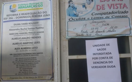 A Superintendência de Vigilância Sanitária de Goiás (Suvisa) interditou dois postos de saúde na quinta-feira (17), em Aragarças (GO), durante uma vistoria nas edificações pedida pela promotora de Justiça do Ministério Público de Goiás (MP), Ana Carla Mascarenhas. A promotora solicitou à Suvisa uma inspeção nas duas unidades, mas os técnicos da Vigilância Sanitária decidiram pela interdição quando estavam na cidade e classificaram a situação como “insalubre“.