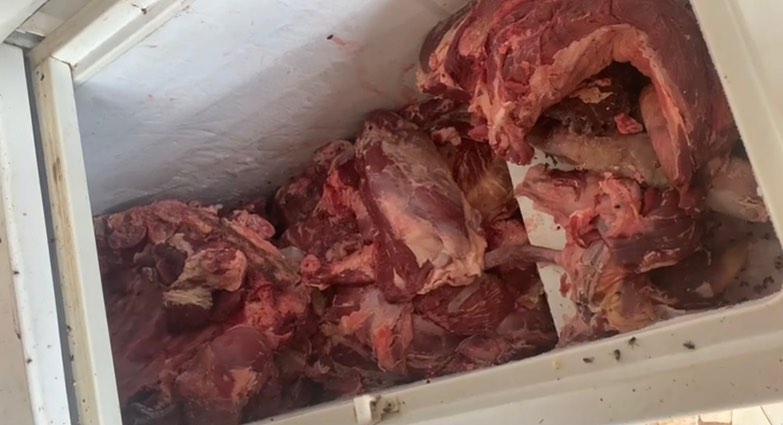 Em imagens é possível ver muitas moscas nas carnes. Uma das suspeitas é de que os animais abatidos foram adquiridos por meio de crimes de furto e roubo, na região. Duas espingardas também foram apreendidas na fazenda.
