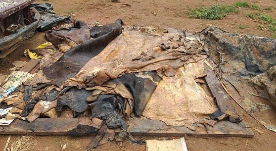 No local foram encontrados couros e carnes de sete bovinos abatidos, armazenados de maneira imprópria e sem os padrões de higiene adequados