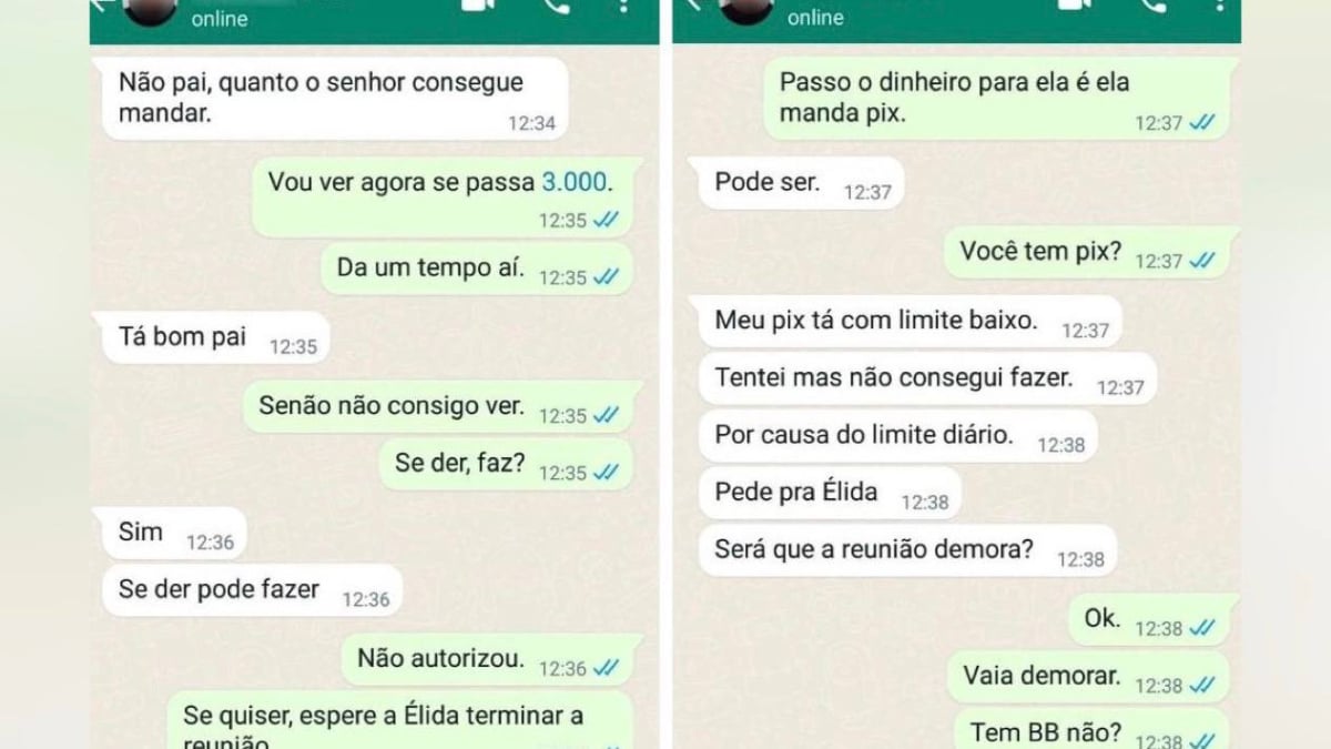 O suspeito, segundo a PC, usou uma foto do irmão da vítima para enganar o pai da jornalista e proceder com o “golpe do novo número”. Mensagens mostram que ele pede uma transferência Pix sob argumento de que teria que realizar um pagamento urgente.