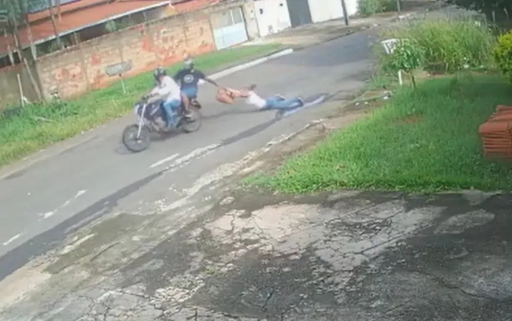 Era por volta das 8h30 da manhã do dia 4 de fevereiro quando a dupla, numa motocicleta, anunciou o assalto à vítima no Jardim Presidente. Uma câmera de segurança de uma residência registrou quando o garupa segurou a bolsa da mulher, que se recusou a soltar o acessório e foi arrastada.