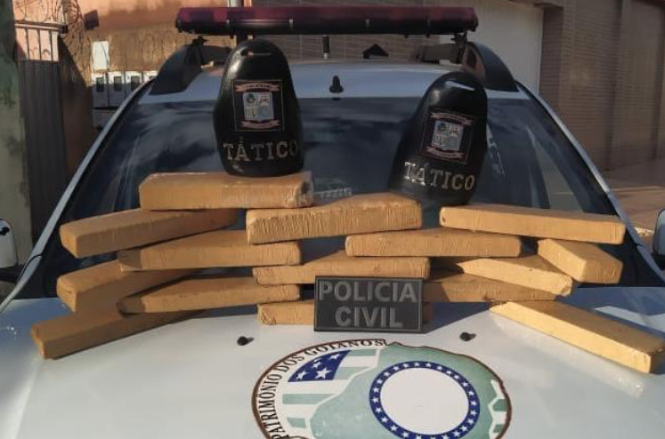 Foi após receberem a denúncia que uma carga de fertilizantes roubada estava escondida nos fundos de uma residência, que os policiais civis e militares chegaram até a casa do suspeito. A suposta carga não foi encontrada, mas 15 tijolos de maconha estavam escondidos em uma parede falsa, em um dos cômodos da residência.