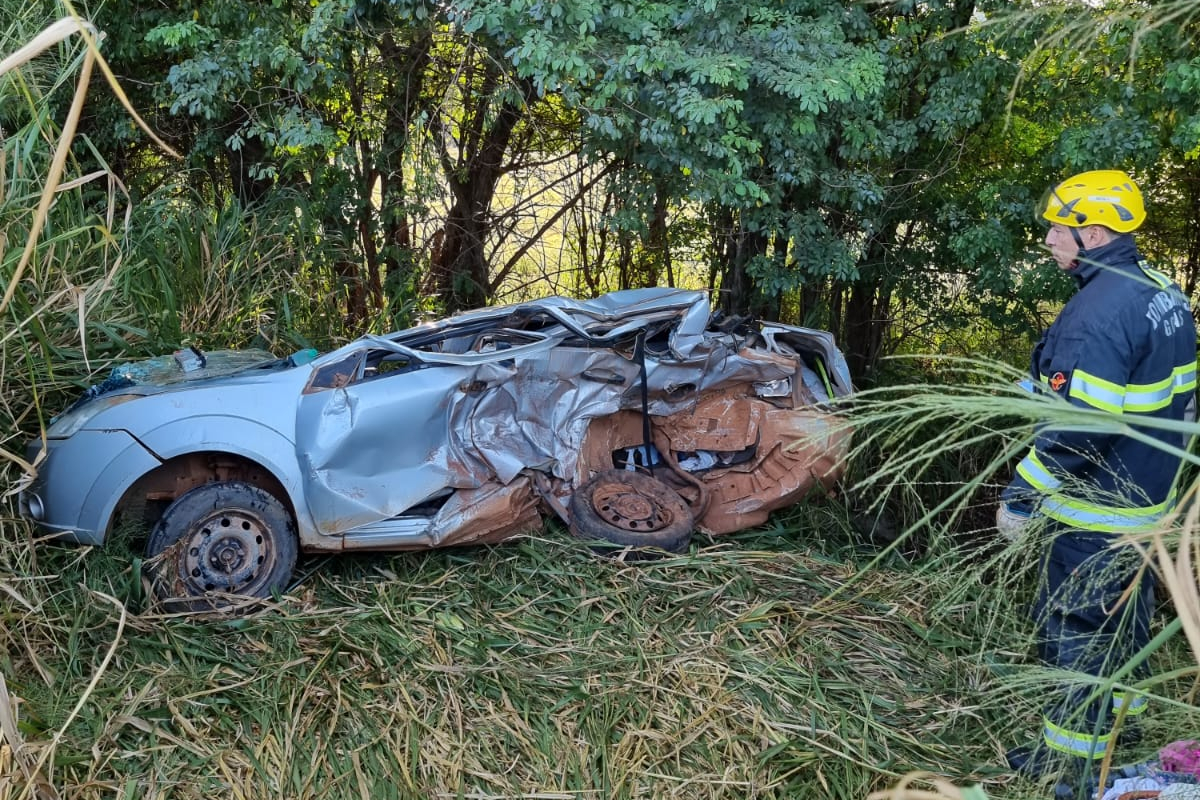 Com impacto, o carro da família caiu em uma ribanceira, enquanto o veículo do suspeito rodou pela pista. As três crianças usavam os dispositivos de segurança adequados, mas, mesmo assim, a bebê morreu.
