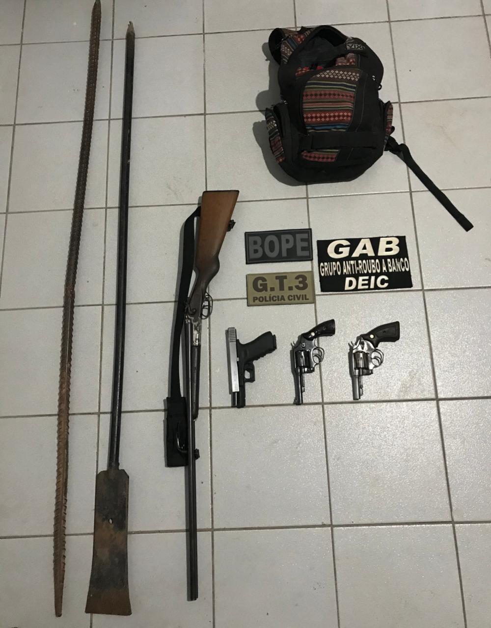 No carro em que eles estavam, os policiais apreenderam uma espingarda, uma pistola, dois revólveres, e outras ferramentas usadas em arrombamentos de caixas eletrônicos. Segundo a polícia, os quatro mortos, apesar de serem novos, já possuíam vários antecedentes criminais. Três deles moravam na cidade, e outro em Goiânia. Os nomes não foram divulgados.