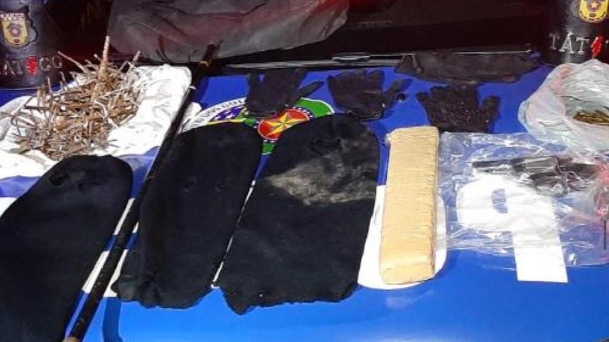 Dentro do carro dos suspeitos, os militares apreenderam três explosivos usados para arrombar caixas eletrônicos; capuzes; um pés de cabra e um saco cheio de “miguelitos”, pregos soldados utilizados para furar pneus de viaturas. Informações recebidas pelos policiais indicam que os dois suspeitos explodiriam caixas eletrônicos na madrugada desta sexta-feira (7), em Abadia de Goiás.
