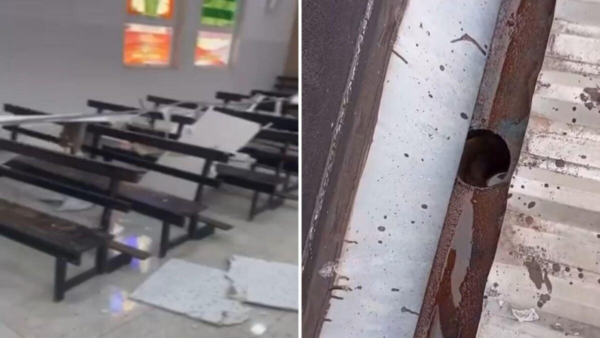 Parte do teto da Paróquia Nossa Senhora da Piedade, em Porangatu, norte de Goiás, desabou no último domingo (9) durante a missa das 7h. O padre Eduardo Lustosa, que conduzia a celebração, precisou de atendimento médico em função do susto. Apesar do acidente, ninguém ficou gravemente ferido.