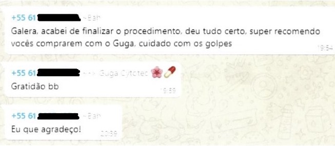 O homem também administrava um grupo de aplicativo de conversas denominado Guga Cytotec, em referência à marca do abortivo comercializado