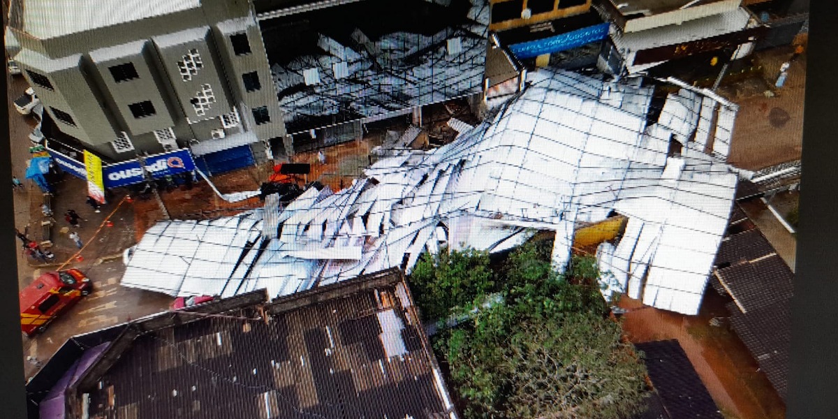 Forte chuva e rajadas de vento de 70 km/h contribuíram para a queda do telhado