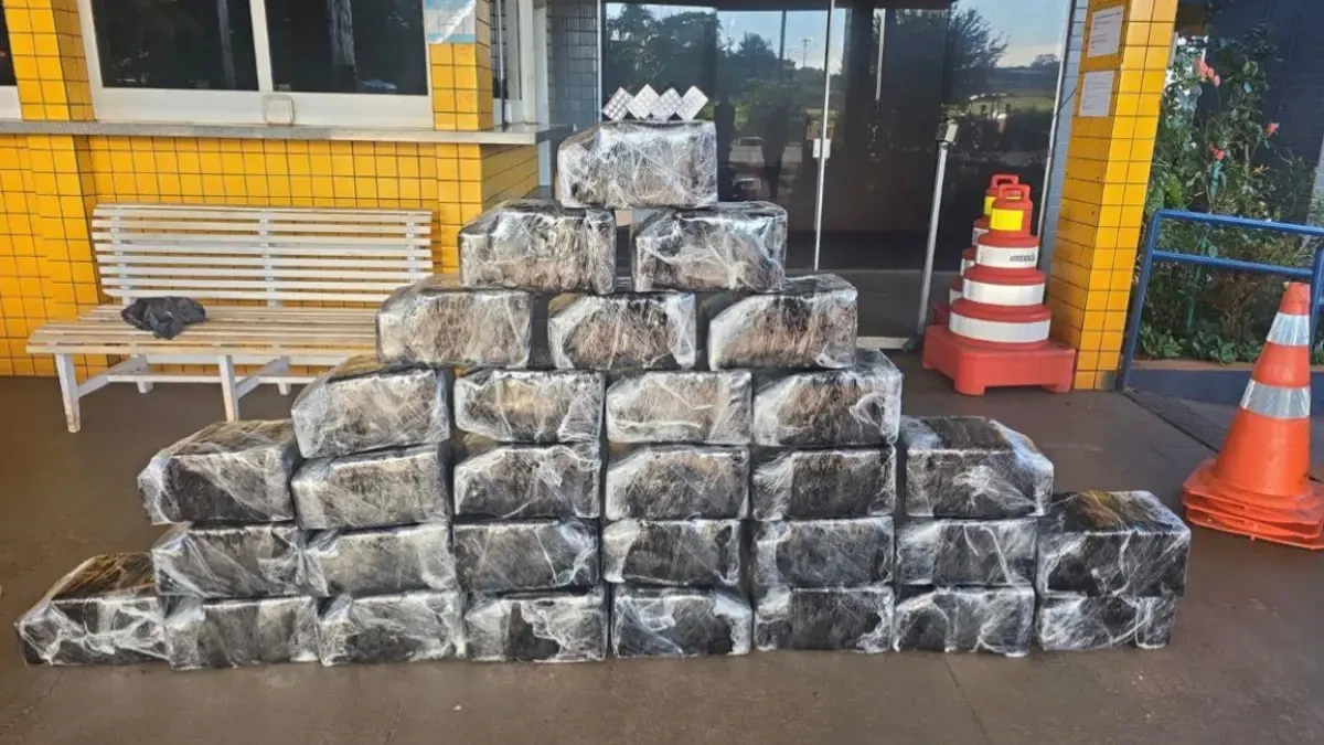 Na cabine do caminhão, a equipe localizou 32 fardos de cloridrato de cocaína — a forma mais pura da droga —, totalizando o carregamento milionário. Além do entorpecente, foram apreendidas quatro cartelas de anfetaminas.