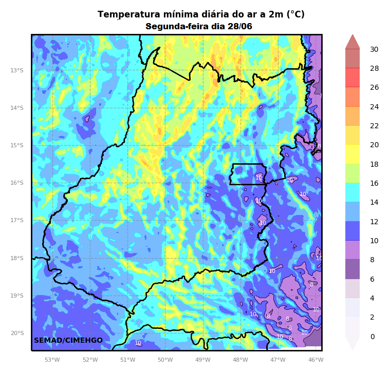 O clima frio também foi sentido na região Leste do estado, onde os termômetros chegaram a 9ºC. Nas regiões Sudoeste e Sul, a mínima foi de 10ºC, nesta segunda-feira, de acordo com o Centro de Informações Meteorológicas e Hidrológicas do Estado de Goiás (Cimehgo).