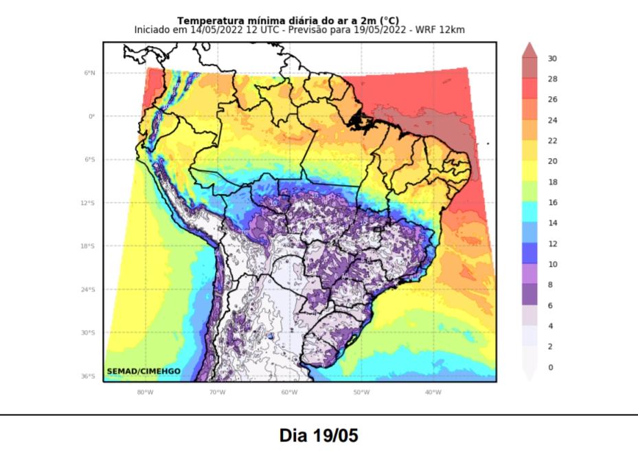 Segundo André, as menores temperaturas estão previstas para quinta-feira (19), sendo: