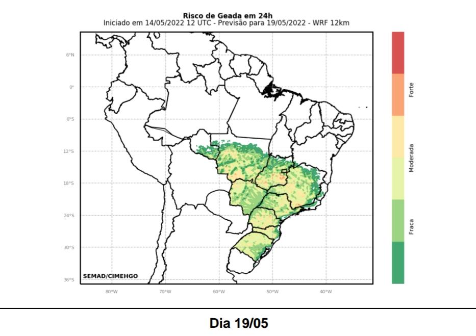 O boletim meteorológico ressalta que o frio deve se estender até dia 26 de maio e pode haver ocorrências de geada, que afeta diretamente os setores da agricultura, piscicultura e pecuária, além de deixar em agravar a condição de moradores de rua e pessoas em situação de vulnerabilidade social.