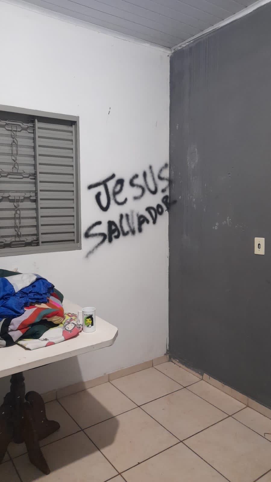 Local foi depredado, itens foram roubados e uma série de pichações foram feitas nas paredes com as palavras “Jesus Salvador” e “Jesus Rei dos Reis”