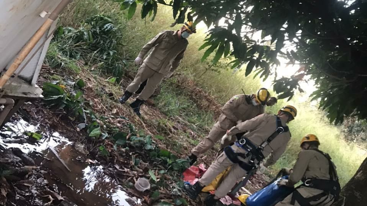 O homem estava sem celular e precisou gritar por socorro através de um cano de água. Um vizinho ouviu os gritos e acionou o socorro.