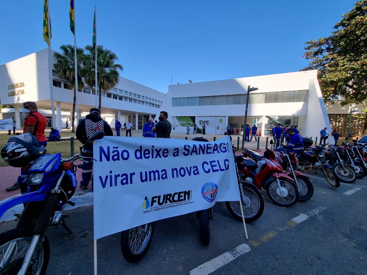 Representantes do Sindicato dos Trabalhadores nas Indústrias Urbanas (Stiueg) e da Federação Interestadual dos Trabalhadores Urbanitários do Centro-Norte realizam, nesta terça-feira (8), protesto contra o projeto nº 5208/21 que prevê alteração na lei de criação da Saneamento de Goiás S/A (Saneago). Manifestantes estão na porta da Assembleia Legislativa (Alego) e contestam, entre outras coisas, a porcentagem da venda das ações da companhia. Propositura está em fase de segunda votação na Casa de Leis.