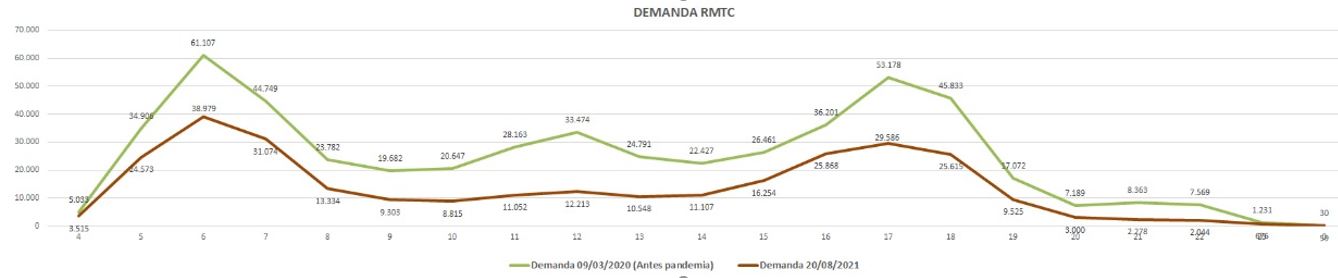 Na demanda geral da Rede Metropolitana de Transporte Coletivo (RMTC) o fluxo também caiu. Conforme os dados divulgados no último boletim, a RMTC registrava 521.963 validações de usuários no dia 9 de março do ano passado. Já no dia 20 de agosto deste ano, esse número havia caído para 289.481 usuários: redução de 44,5% nas validações durante todo o dia. Vale destacar que o sistema de embarque prioritário, medida que determinava a exclusividade do fluxo de trabalhadores de serviços essenciais em horários de pico, foi suspenso no dia 19 de julho deste ano.