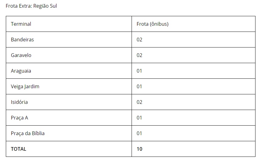 Conforme o órgão, além do acréscimo na frota, a programação de 2.534 viagens aos domingos continua normalmente. A maior quantidade de ônibus nas eleições visa atender a população que precisa se deslocar para votar, sem que haja transtornos relacionados ao transporte público.