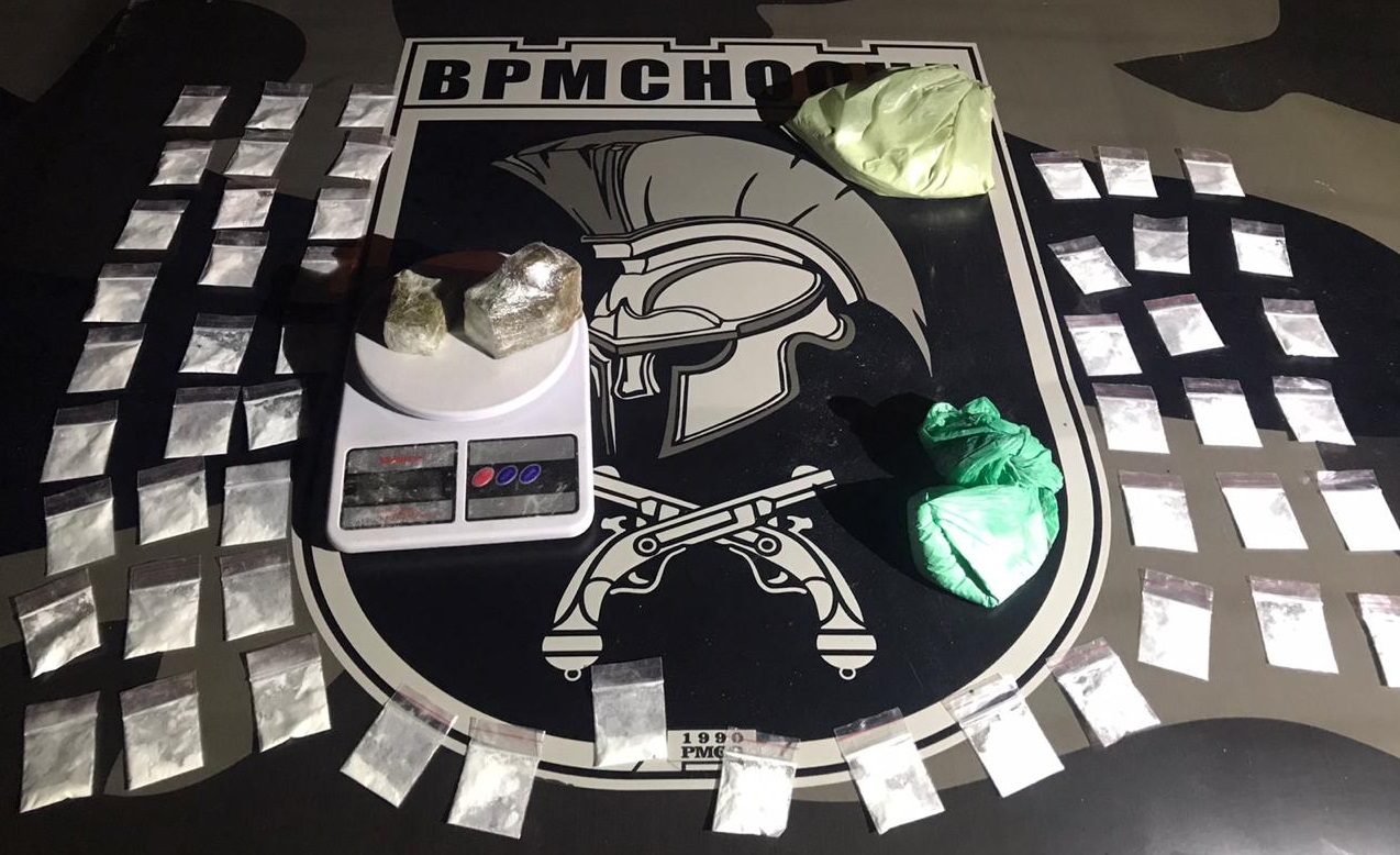 A equipe, juntamente com o abordado, se deslocou até a residência do suspeito. No local foram localizados mais 400 gramas de cocaína, 50 papelotes de cocaína, 400 gramas de maconha e uma balança de precisão.